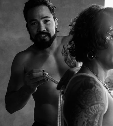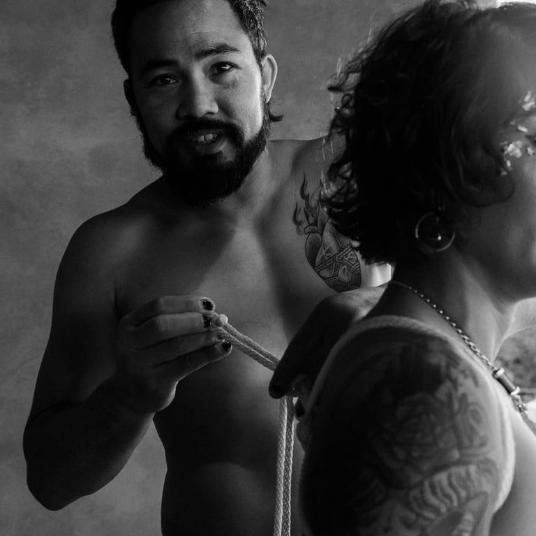 Personalized, intimate rope bondage scenes for individuals, couples and small groups