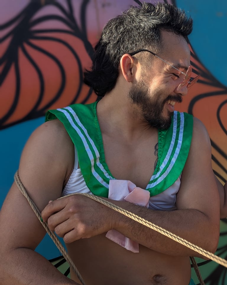 Along with their annual workshops at LIB and The Big Burn, Kemo was a resident rope bondage instructor at Kink Collective OC in Santa Ana, CA throughout 2024. Today they can be found teaching pop-up workshops on topics such as negotiating a rope scene, arms-free harnesses, and rope for couples.